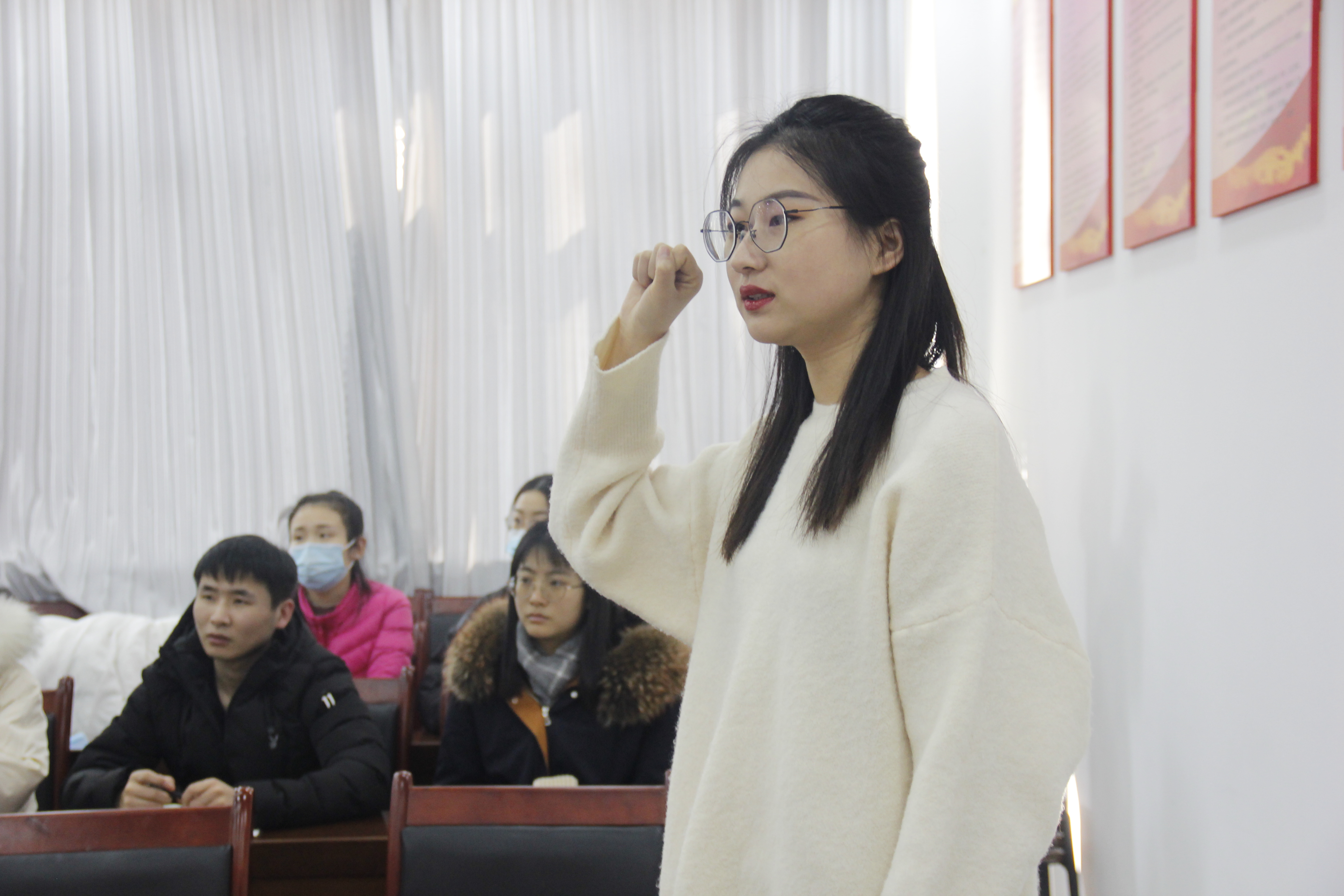 随后,由党员代表肖杰同学领誓,三名预备党员庄重宣誓。大会第二议程由支部书记郑雪萍同志宣读关于增选刘妙祎、孙元国两名同志为支部委员的决议,经支部党员投票表决通过。
