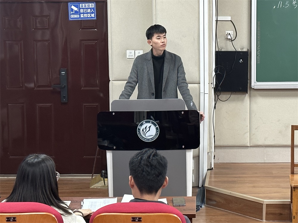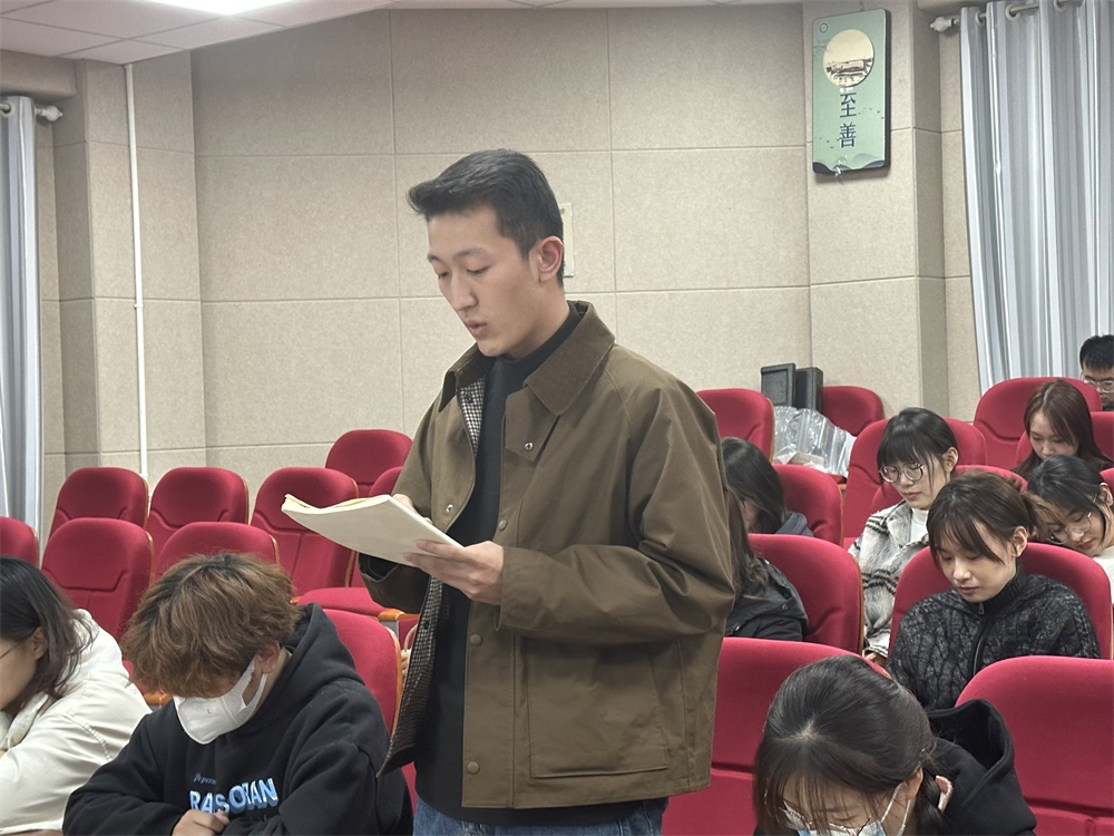 第三项议程,集体学习《研究生会章程》,王祥宇对章程重点内容进行了详细解读,章程规定了主席团和各部门的职权,强调院研究生会应坚持“全心全意为同学服务”的宗旨。