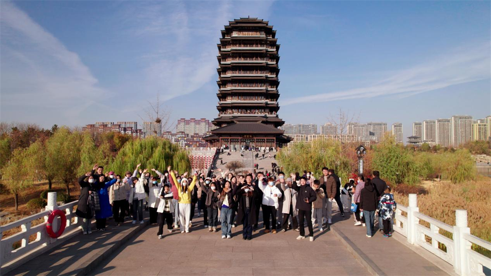 第四站——海岱楼。海岱楼作为淄博市地标性建筑,藏书万卷,创新性地融合了现代科技成果宣传历史文化,衍生出众多文化创意产业,这种与时俱进的宣传模式启发了同学们用更好的创意来完成影片创作,为同学们打开了影片创作的新视野。
