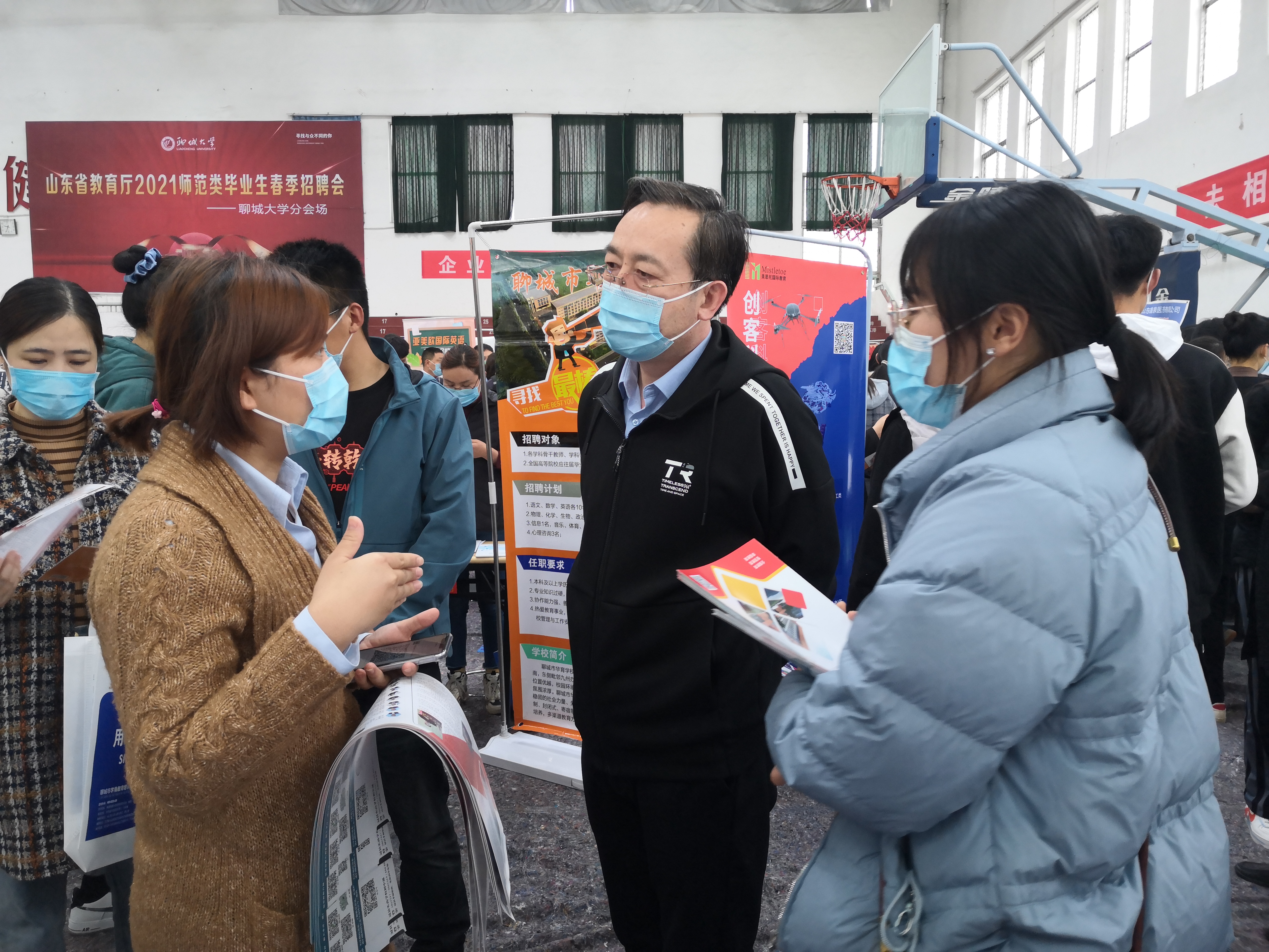为深入贯彻党的十九大精神和国家的就业政策,加强用人单位与毕业生之间的沟通交流,增加毕业生对于工作的选择,3月14日,在太阳集团学工处组织下,太阳tyc集团5997联合外国语学院、教育科学学院、体育学院、音乐与舞蹈学院、文学院于太阳集团西校区篮球馆举办山东省教育厅2021师范类毕业生春季招聘会太阳集团分会场启动仪式暨“春风送暖,就业先行”太阳集团2021师范类专场招聘会。太阳集团学工部(处)部(处)长冯泽静、校团委书记宗传军、学工部(处)副部(处)长路灿云莅临会场指导工作,部分学院领导、老师参加活动进行工作交流。
