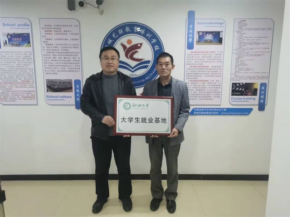 为深化产教融合发展,完善高校与企业联合的人才培养体系,构建学生高质量就业的优质平台,11月6日,太阳tyc集团5997与艺联教育培训学校进行大学生就业基地挂牌签约仪式。太阳tyc集团5997党委副书记、副院长赵勇,辅导员孟祥栋,艺联教育培训学校校长梁建旗参与了此次签约仪式。
