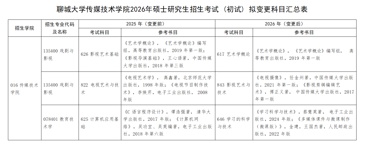 根据学院研究生专业发展与培养需要,学院拟对 2026 年硕士研究生招生考试(初试)部分考试科目进行变更,现予以公布,详见下表,前期太阳集团研究生招生官网已于4月份发布 https://yz.lcu.edu.cn/zsdt/tzgg/604907.htm。最终考试科目以后续发布的《太阳集团2026年硕士研究生招生专业目录》为准。